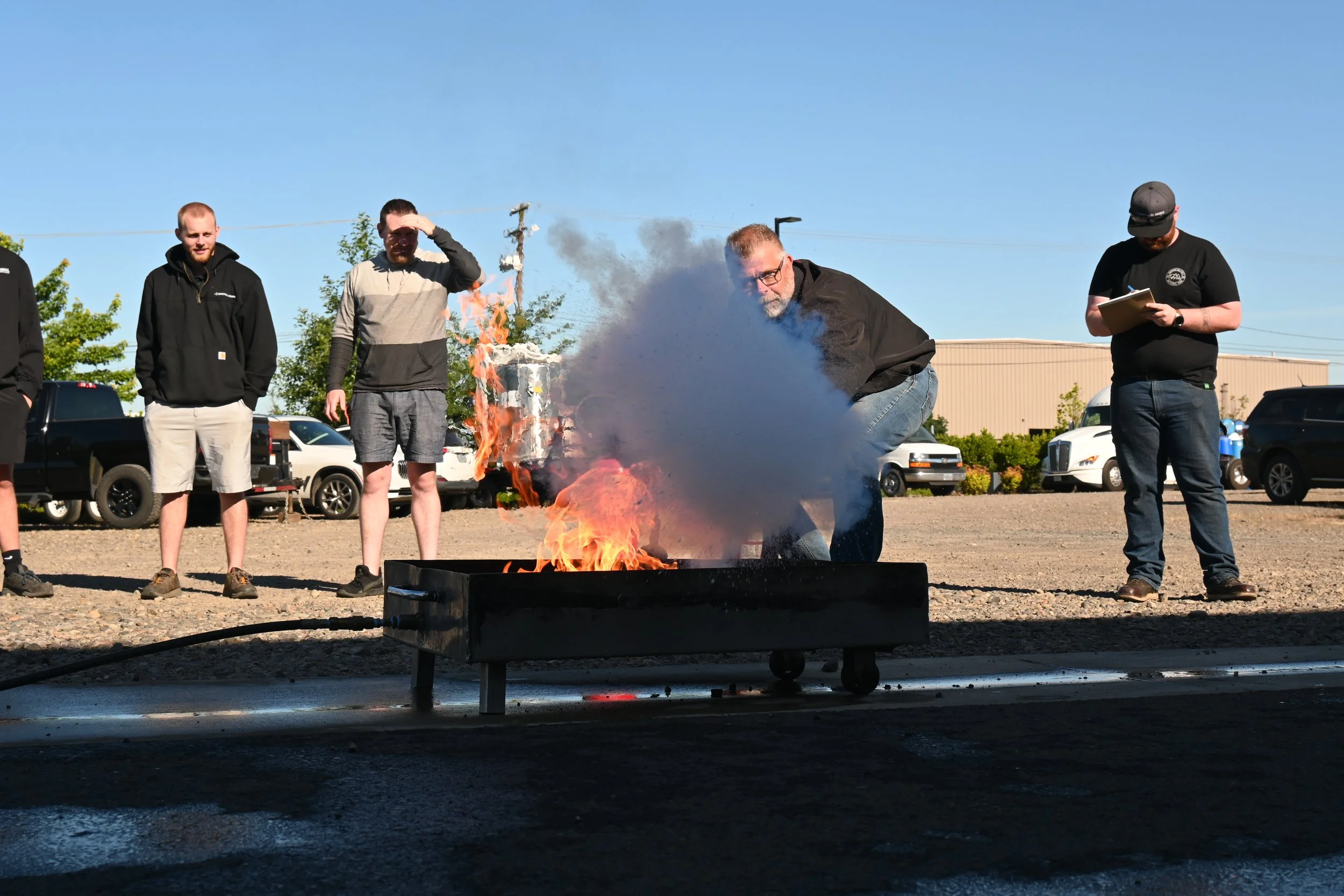 Hands-On Training - This is where it gets exciting—practical, hands-on live-fire instruction using real extinguishers in a controlled environment.